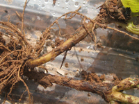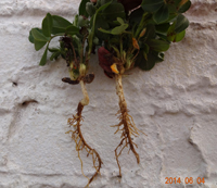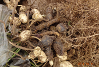 癥狀:花生根結(jié)線蟲病主要為害植株的地下部,因地下部受害引起地上部生長發(fā)育不良。幼苗被害,一般出土半個(gè)月后即可表現(xiàn)癥狀,植株萎縮不長,下部葉變黃,始花期后,整株莖葉逐漸變黃,葉片小,底葉葉緣焦灼,提早脫落,開花遲,病株矮小,似缺肥水狀,田間常成片成窩發(fā)生。雨水多時(shí),病情可減輕。
