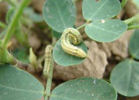 癥狀:在花生尚未出土?xí)r,蚜蟲就能鉆入土內(nèi)在幼莖嫩芽上危害,花生出土后,多在聚集頂端心葉及嫩葉背面吸取汁液,受害后的葉片嚴(yán)重卷縮。開花后主要聚集于花萼管及果針上危害,果針受害雖能入土,但莢果不成實(shí),秕果多。受害嚴(yán)重的花生,植株矮小,生長停滯。猖獗發(fā)生時(shí),蚜蟲排出大量蜜露,引起霉菌發(fā)生,使花生莖葉變黑,甚至整株枯萎死亡。